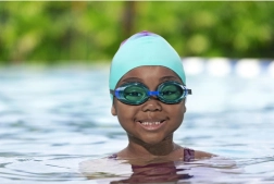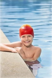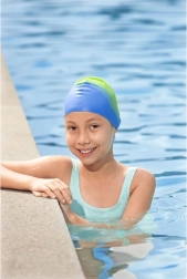 Der ergonomische Schnitt passt sich dem Kopf an, schützt Haare und Ohren vor Spritzwasser und hilft zugleich, den Widerstand zu verringern für ein flüssigeres Schwimmen. Das mehrfarbige Design erhöht die Sichtbarkeit im Becken und kommt bei Kindern bestens an.