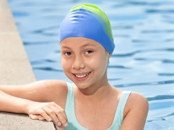 Dank des ergonomischen Zuschnitts liegt die Kappe dicht am Kopf an, minimiert den Wasserwiderstand und unterstützt einen flüssigeren Schwimmstil. Gleichzeitig bildet sie eine wirksame Barriere gegen Poolwasser und Chlor – sie schützt Haare, Kopfhaut und Ohren. Das mehrfarbige Design ist nicht nur attraktiv, sondern erhöht auch die Sichtbarkeit des Kindes im Wasser.
