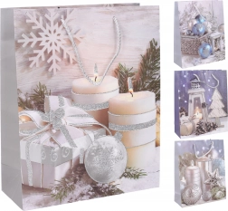 Elegante Geschenktasche für Weihnachtsgeschenke in Größe L mit den Maßen 30 × 42 × 12 cm. Sie bietet 4 verschiedene weihnachtliche Motive, ist praktisch für schnelles Verpacken und verleiht Geschenken ein repräsentatives Erscheinungsbild.
