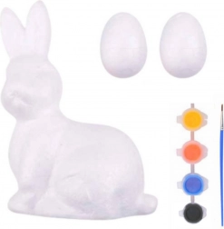 In diesem kreativen Set finden Sie einen Polystyrol-Hasen und zwei Polystyrol-Eier. Dank der im Set enthaltenen Farben in intensiven Tönen und dem Pinsel ist das Malen eine einfache und angenehme Aktivität. Dieses Set fördert die Kreativität und Handfertigkeiten und ermöglicht das Erstellen einzigartiger Dekorationen für den Ostertisch, Kränze oder Körbe. Die fertigen Figuren werden ein wunderschöner Teil der festlichen Atmosphäre, die dem Interieur eine außergewöhnliche Frühlingsstimmung verleiht.