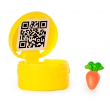 Öffne die gelbe Kapsel, entdecke Mini-Accessoires (z. B. eine Karotte) und scanne den QR-Code für eine besondere Belohnung in der App.