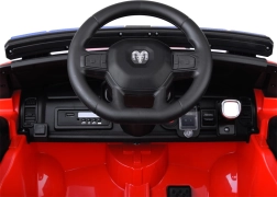 Gestartet wird per Knopf – es ertönt der Start- und Motorlauf-Sound und die Frontscheinwerfer schalten sich ein. Das Multimedia-Lenkrad verfügt über Hupe und Musiksteuerung, das Panel bietet USB/Mp3-Eingang, vorinstallierte Songs, Ladezustandsanzeige und eine Taste für Blaulicht und Sirene. Der High/Low-Schalter verändert die Geschwindigkeit, der Richtungswähler schaltet vorwärts/rückwärts und eine kindersichere Verriegelung verhindert das eigenständige Ändern des Modus.