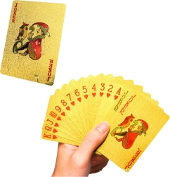 Treten Sie ein in die Welt emotional geladener Spiele mit goldenen Plastikkarten. Dieses Kartenset ist ideal für klassische Spiele wie Poker, Makao oder Tausend. Ihr goldenes Design verleiht allen Spielen ein luxuriöses Aussehen und garantiert Langlebigkeit dank der widerstandsfähigen Plastikstruktur. Sie sind die perfekte Wahl für Abende mit Freunden oder der Familie oder als geschmackvolles Geschenk für Kartenliebhaber.