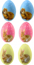 Die Eier sind in den Pastellfarben Gelb, Blau und Rosa erhältlich und bringen jede Dekoration zum Strahlen.