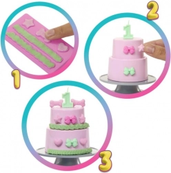 Das Set enthält eine Silikonform, die es ermöglicht, verschiedene Formen und Dekorationen zu erstellen, ideal zum Verzieren von Torten oder Spielumgebungen.