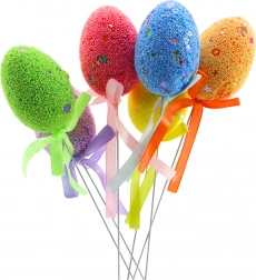 Gestalten Sie im Handumdrehen eine fröhliche Frühlingsdeko. Das Set enthält 6 dekorative Eier am Stiel in verschiedenen Farben, die in einer Vase mit Zweigen, im Blumentopf oder in geflochtenen Arrangements wunderschön zur Geltung kommen. Leichtes Polystyrol mit einer Oberfläche aus Kügelchen und feinen Mustern wirkt verspielt und zugleich elegant.