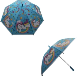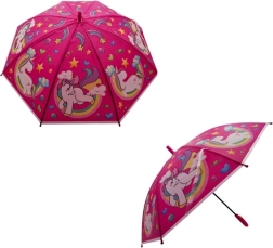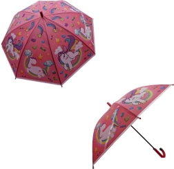 Der niedliche Kinderschirm mit Einhornmotiv schützt Ihre Kinder vor Regen und begeistert zugleich mit einem verspielten Design. Dank des Automatik-Mechanismus öffnet er schnell, die robuste Stahlkonstruktion sorgt für Stabilität und der Kunststoffgriff liegt auch in kleinen Händen bequem.