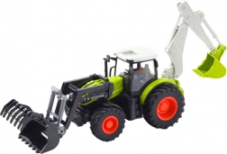 Der realistisch gestaltete Traktor im Maßstab 1:24 vereint landwirtschaftliche und bauliche Arbeiten in einem. Die Frontschaufel ist drehbar, der hintere Arm dient als kleiner Bagger und die LED-Lichter sorgen auch in der Dämmerung für einen attraktiven Effekt. Gummireifen und die teilweise Metallkonstruktion bewältigen intensives Spielen drinnen und draußen.