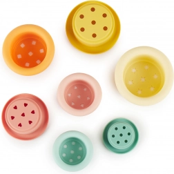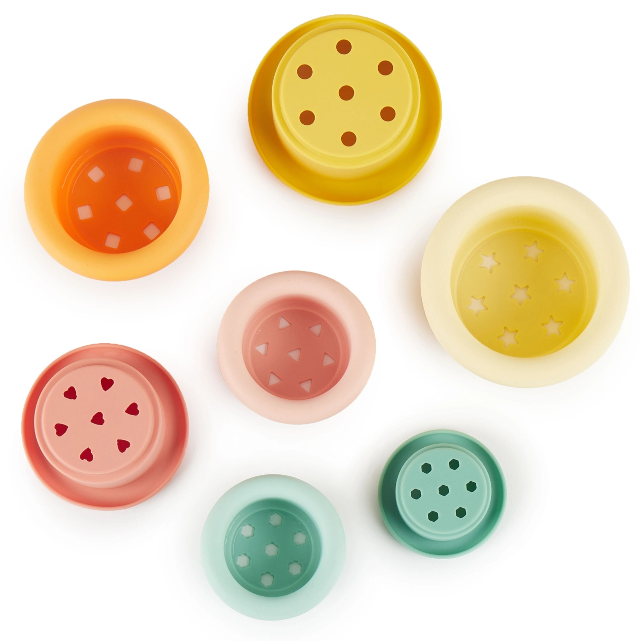 Siebenteiliges Stapelbecher-Set aus 100 % Silikon. Dieses Spielzeug wurde entwickelt, um die Koordination und Feinmotorik von Kindern zu fördern. Hergestellt aus strapazierfähigem und sicherem Silikon sind diese Becher ideal für den Einsatz drinnen wie draußen. Zudem ist die Pflege sehr einfach – einfach mit Wasser und mildem Waschmittel reinigen.