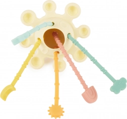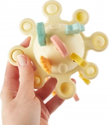 Dieses Silikon-Motorikspielzeug ist nach Montessori-Prinzipien gestaltet und unterstützt Kinder dabei, Fähigkeiten spielerisch und natürlich zu entwickeln. Die widerstandsfähigen Ziehschnüre lassen sich vor- und zurückbewegen, Drück-Elemente stärken die Finger- und Handmuskulatur und abwechslungsreiche Texturen stimulieren Tastsinn und Neugier.