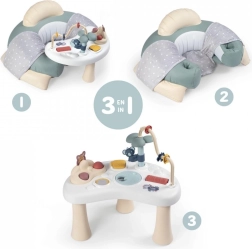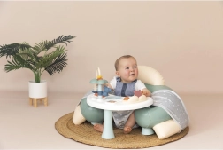 Der interaktive Sitz LITTLE SMOBY ist ein gemütlicher und ergonomisch geformter „erster Sessel“, der das Üben des selbstständigen Sitzens unterstützt und zugleich unterhaltsame Aktivitäten für die frühzeitige Entwicklung bietet. Der mit Stoff bezogene Sitz ist angenehm zu berühren und leicht zu pflegen, während die stabile und weiche Konstruktion dem Kind beim Spielen und Füttern Komfort und Sicherheit bietet.