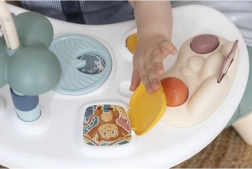 Der abnehmbare Tisch auf drei Beinen liefert vielfältige sensorische Reize: Versteckspiel mit Känguru, ein sich drehender Koala an einer kleinen Palme, ein sicherer Spiegel und eine Perlenbahn. Diese Aktivitäten fördern Feinmotorik, Konzentration und Augen-Hand-Koordination und halten das Baby zufrieden und beschäftigt.