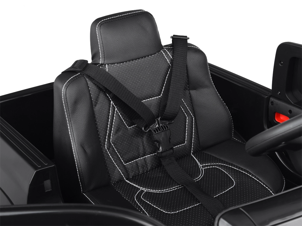 Das Kinderfahrzeug RAM ist ein lizenziertes Modell, das mit seinem Design die Träume aller Liebhaber von Vierradfahrzeugen erfüllt. Dank des leistungsstarken Antriebs eignet es sich für Fahrten auf Asphalt, Pflaster und Rasen. Die leicht zu öffnenden Türen erleichtern den Einstieg, während der bequeme Sitz mit 3-Punkt-Sicherheitsgurt Komfort und Sicherheit bietet. EVA-Räder und Stoßdämpfer an den Hinterrädern erhöhen den Fahrkomfort.