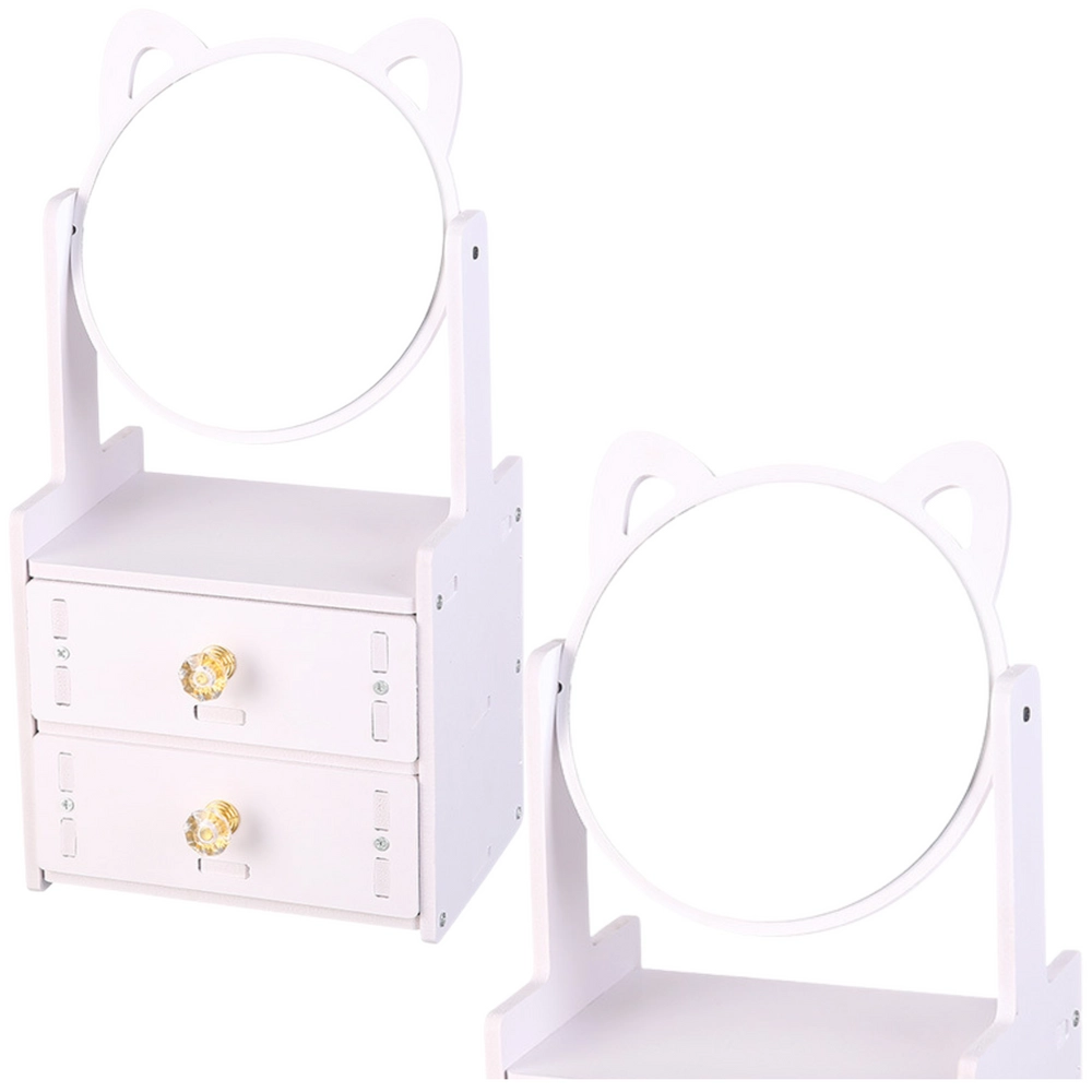 Der Schminktisch zeichnet sich durch ein einzigartiges Design aus, das moderne Eleganz mit niedlichen Details verbindet. Der Spiegel in Form von Katzenohren verleiht dem Set einen unverwechselbaren Charakter, und seine um 360° drehbare Konstruktion ermöglicht eine einfache Anpassung des Blickwinkels, was Schminken und Pflege noch komfortabler macht.