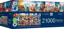 Erschaffen Sie zu Hause ein einzigartiges Panorama – ein riesiges Puzzle mit insgesamt 21.000 Teilen zeigt die Chronik der Erde von ihrer Entstehung bis zu Zukunftsvisionen. Jedes der 14 Motive (je 1500 Teile) ist separat verpackt, sodass Sie dort beginnen können, wo Sie möchten, und sie dank der UFT-Technologie schrittweise zu einer beeindruckenden Komposition verbinden.