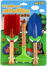 Drei Grundwerkzeuge – Schaufel, Spaten und Harke – ermöglichen Kindern zu graben, umzutopfen und den Boden zu lockern. Alles in idealer Größe für Kinderhände.