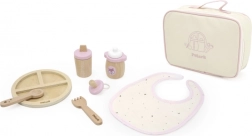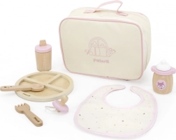 Teller, Besteck, Schnuller, zwei Fläschchen und ein Lätzchen – Kinder haben alles, was sie für die Pflege ihrer Puppe brauchen.