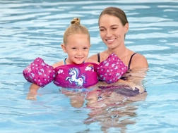 Hinweis: Es handelt sich nicht um eine Rettungsweste. Nur in Gewässern verwenden, in denen das Kind stehen kann, und stets unter ständiger Aufsicht einer erwachsenen Person.