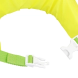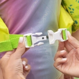 Eine robuste Kunststoffschnalle mit verstellbarem Gurt wird am Rücken geschlossen, sodass das Kind sie nicht selbst öffnet. Sie sorgt für einen sicheren und stabilen Sitz beim Spielen und Schwimmen.