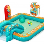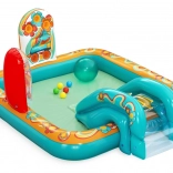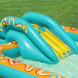 Das aufblasbare Spielcenter BESTWAY Retro Groove verwandelt Ihren Garten in einen farbenfrohen Wasserspielplatz. Die stabile Rutsche, fest am Boden fixiert, führt in ein flaches Becken, und für Erfrischung sorgt der Wassersprühkopf, der einfach an den Schlauch angeschlossen wird. Retro-Grafiken und Zubehör wie Bälle und ein Strandball fördern kreatives Spiel und die Motorik.
