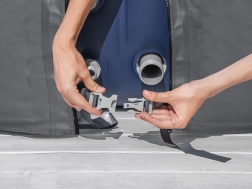 Die praktische Reißverschlusslösung ermöglicht das Anschließen von integrierten und externen Pumpen, ohne die Abdeckung abnehmen zu müssen.