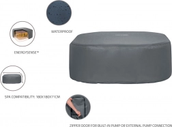 Das robuste DuraPlus-Material ist für den langfristigen Außeneinsatz konzipiert – es ist wasserbeständig, formstabil und pflegeleicht. Die praktische Reißverschlussöffnung ermöglicht das Anschließen einer integrierten oder externen Pumpe, ohne die Abdeckung abnehmen zu müssen – die Wartung ist bequem und schnell.