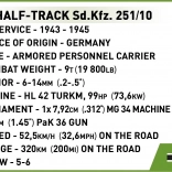 Der Bausatz Half-Track Sd.Kfz. 251 bietet ein authentisches Bau- und Spielerlebnis. Dank detailreicher Drucke, beweglicher Räder mit Gummireifen und realistischer Ketten verhält sich das Modell wie ein echtes Fahrzeug. Die öffnende Hecktür und zahlreiche Accessoires fördern kreative Szenarien.