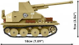 Freuen Sie sich über funktionierende Ketten, drehbare Räder und eine verstellbare Kanone. Außerdem erhalten Sie eine separate Feldkanone 5 cm PaK 38 sowie einen Wegweiser EL ALAMEIN für noch mehr Spiel- und Ausstellungsmöglichkeiten.