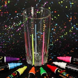 Der Kreide- und wasserbasierte Tinten lässt sich leicht mit einem feuchten Tuch abwischen, ohne Spuren zu hinterlassen.