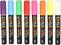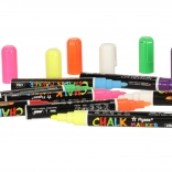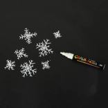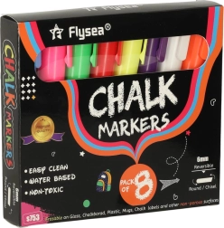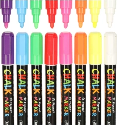 Jeder Marker hat eine doppelseitige Spitze (rund und schräg), die nach Bedarf gedreht werden kann, was Präzision und Vielfalt der erstellten Linien gewährleistet. Der Kreide- und wasserbasierte Tinten hinterlässt keine Spuren; ein feuchtes Tuch reicht aus, um ihn zu entfernen – ohne Verschmieren und Rückstände. Außerdem färbt er nicht die Hände und erzeugt keinen Staub wie traditionelle Kreide.