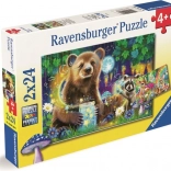 Entdecken Sie den Zauber des Waldes mit diesen beiden wunderschönen Puzzles von Ravensburger. Jede Packung enthält zwei Puzzles mit niedlichen Waldfreunden.