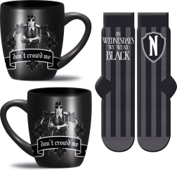 Suchen Sie ein originelles Geschenk für Fans von WEDNESDAY? Dieses praktische Set verbindet täglichen Komfort mit Stil. Der Keramikbecher mit 315 ml Fassungsvermögen ist ideal für Kaffee oder Tee und kann bedenkenlos in die Spülmaschine und Mikrowelle gegeben werden. Die weichen Socken in der Universalgröße 36–41 tragen sich angenehm und passen sich dem Fuß leicht an.