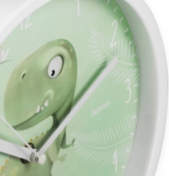 Diese Kinder-Wanduhr bringt Freude und Farbe in jedes Zimmer. Dank des grünen Zifferblatts mit Dinosauriermotiv zieht sie die Aufmerksamkeit der Kinder auf sich und fördert ihr Interesse am Erlernen der Zeit.