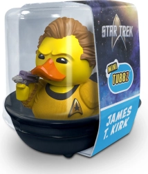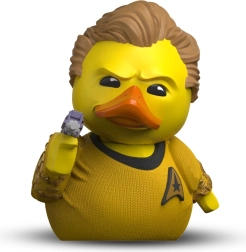 Diese offiziell lizenzierte Mini-Ente von TUBBZ präsentiert James T. Kirk in einer verspielten Ausführung mit Liebe zum Detail – goldene Uniform mit Flottenabzeichen, sorgfältig geformte Haare und ein kleiner Phaser im Flügel. Ideal als Geschenk für Fans von STAR TREK und Popkultur-Liebhaber.