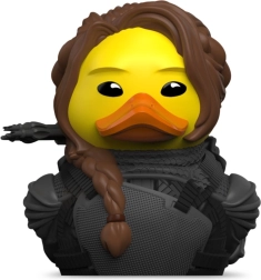 Diese Gummiente ist mit präziser Detailgenauigkeit gearbeitet und fängt das ikonische Aussehen der Heldin Katniss Everdeen mit braunen Zöpfen und schwarzem Kostüm ein. Die Ente misst etwa 9 cm und ist aus hochwertigem PVC-Material gefertigt, das ihre Widerstandsfähigkeit und Langlebigkeit gewährleistet.