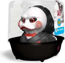 Inspiriert von der ikonischen Figur aus dem Film 'Saw', kombiniert diese Ente spielerisches Design mit Horrorelementen.