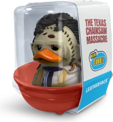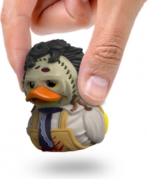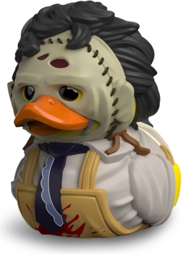 Die Mini-Badeente "Leatherface" bietet ein schauriges Erscheinungsbild mit detaillierter Maske und charakteristischen Merkmalen aus der Filmvorlage.