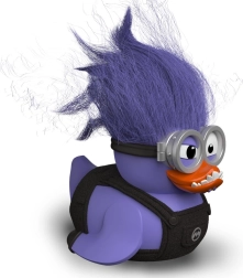 Violette Haare, silberne Brille und schwarzer Overall – eine originalgetreue Darstellung der Figur aus Minions in einer witzigen Enten-Stilisierung.