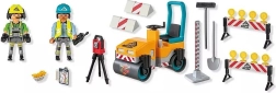 Baue deine eigene Baustelle mit den PLAYMOBIL ACTION HEROES! Dieses Bauset enthält eine Straßenwalze mit drehbaren Walzen, 2 Bauarbeiter-Figuren und umfangreiches Zubehör für realitätsnahes Spiel. Blinkende Straßenbarrieren, verstellbarer Fahrersitz und detailreiche Werkzeuge fördern die Motorik, Kreativität und Fantasie von Kindern im Alter von 4–10 Jahren.