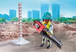 Enthalten sind 2 Bauarbeiter mit Helmen, Funkgerät, Besen, Schaufel, Vermessungsstativ und weitere Werkzeuge für unbegrenzte Szenarien und zur Förderung der Kreativität.