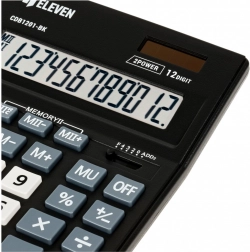 Dieser schwarze ELEVEN-Tischrechner kombiniert ein übersichtliches 12-stelliges Display mit der Sicherheit des Dualbetriebs, sodass er bei Tageslicht und auch ohne zuverlässig funktioniert. Große, gut lesbare Ziffern und eine komfortable Tastenanordnung beschleunigen die täglichen Berechnungen im Büro, in der Schule und zu Hause.