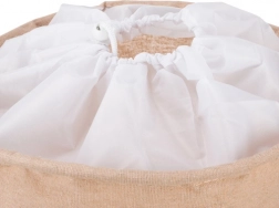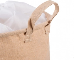 Der integrierte Deckel mit Kordelzug und Stopper sichert den Inhalt im Handumdrehen, sodass nichts herausfällt und Wäsche sowie Spielzeug außer Sicht bleiben.