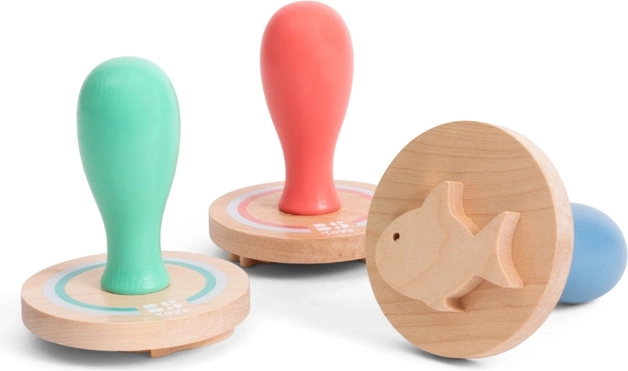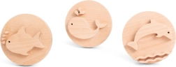 Diese hölzernen Stempel ermöglichen es Ihnen, einen Delfin, Fisch und Wal in den Sand zu drücken. Ideal für Kinder zum Spielen im Sandkasten oder am Strand. Das Spiel fördert die Motorik, Kreativität und das Spielen im Freien.