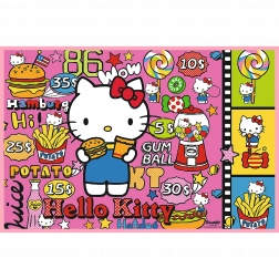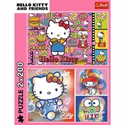 Puzzle 2x200 Hello Kitty und Freunde bietet zwei Bilder in einem Set, jedes mit 200 Teilen, die stundenlangen Spaß für Kinder und Erwachsene bieten. Dieses Puzzle-Set präsentiert bunte Collagen inspiriert von der beliebten Märchenfigur Hello Kitty, die nach dem Zusammensetzen die Maße 410x275 mm erreichen.