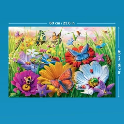 Tauchen Sie ein in die farbenfrohe Welt einer Wiese voller Insekten und genießen Sie entspannte Momente mit einem Puzzle, das Generationen verbindet. Dank der größeren Teile ist das Puzzeln komfortabel, schnell und übersichtlich, sodass das Motiv jeder genießen kann – von Kindern bis zu Großeltern.