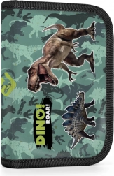 Zum Set gehören ein robuster Polyester-Sportbeutel mit Kordelzug sowie ein einlagiges Federmäppchen mit zwei Klappen und 25 Schlaufen – alles im Motiv Dino Roar.