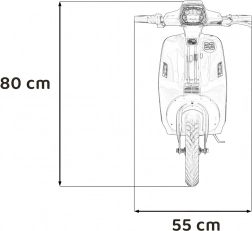 Sicherheit steht an erster Stelle dank LED-Lichtern, einem robusten Rahmen und einem sicheren Start per Knopfdruck. Der Roller bietet einen bequemen Sitz mit einem schwarzen ökologischen Ledersitz, der optimalen Komfort bietet.