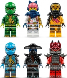 Im Set enthalten sind 6 Minifiguren: die Ninja-Helden Lloyd, Nya, Arin und Sora mit Waffen sowie die Gegenspieler Noktu und Tyr, der Anführer der Drachenwesen. Kinder können so ausgearbeitete Szenen des Kampfs zwischen Gut und Böse nachspielen und ihre NINJAGO Welt mit weiteren Drachen, Tempeln und Fahrzeugen erweitern (separat erhältlich).