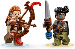 Statte die Minifiguren Aloy mit Bogen und Varl mit Speer mit Feuer-, Frost- oder Schock-Elementen aus, um die Taktiken aus der Horizon-Welt originalgetreu nachzuspielen.