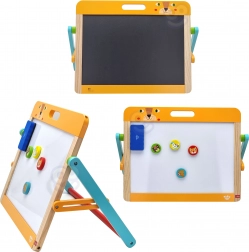Eine Seite ist eine Kreidetafel, die andere magnetisch, was Variabilität für verschiedene lehrreiche und kreative Aktivitäten bietet.